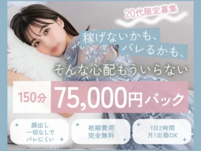 1接客75,000円の地域最高レベルのバックなのに、月に数日、1日2時間~シフトを入れられる気軽さが魅力。お昼のお仕事や学業、ご家庭とも両立しやすい、完全会員制の超高級店。